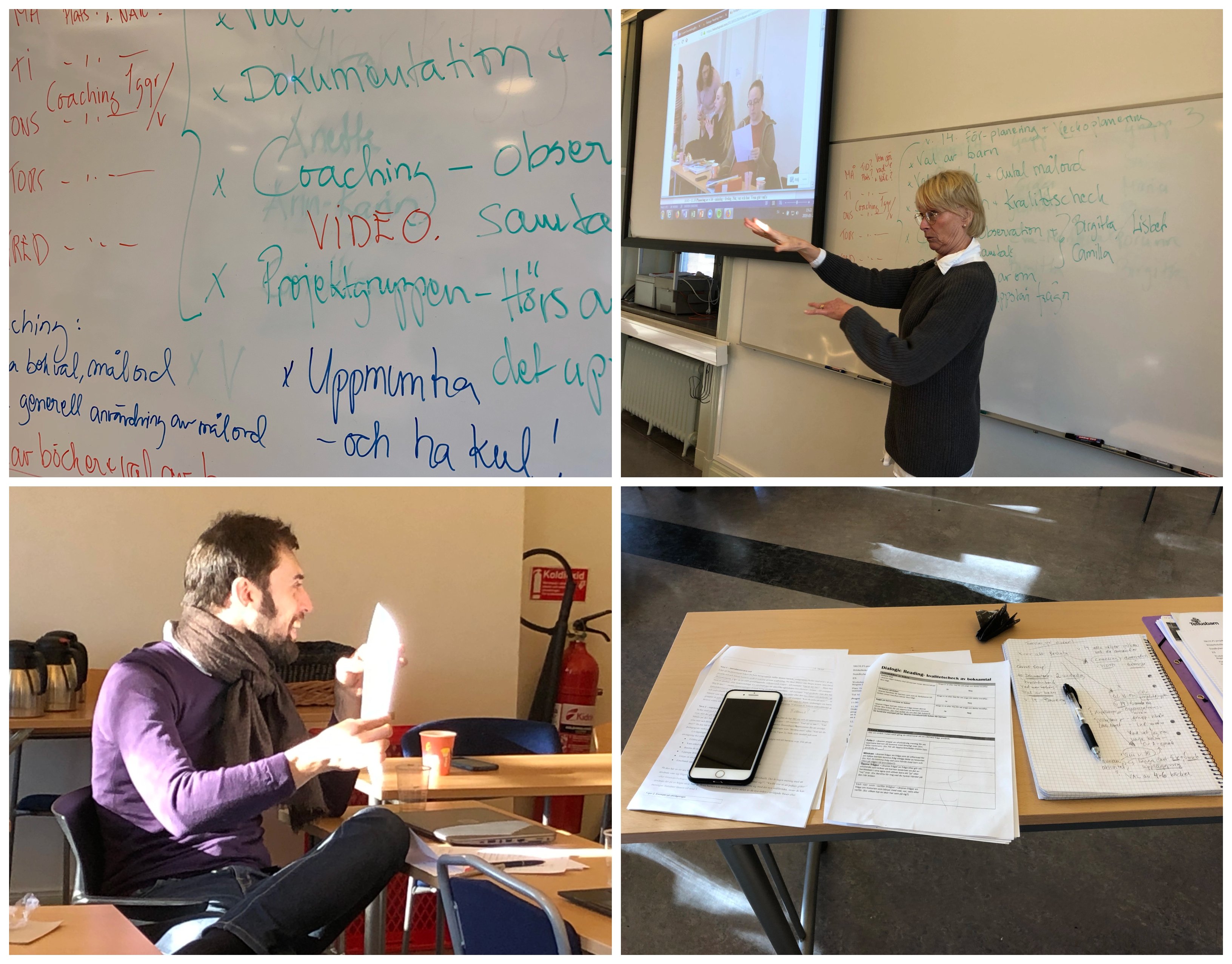 Forumteatern inspirerade genom att vi kunde byta roller och diskutera sätt att bemöta barnen som grupp och även de individuella barnens olika reaktioner och behov. Olika lösningar, tips och idéer var resultatet av ett mycket givande, livfullt och engagerande pass under dagen! Språkforskaren Eva Berglund bidrog med intressanta resultat från forskning rörande barn med svenska som andra språk och Rasmus och Mara stöttade oss alla i att förstå varje barns lärande och utveckling och hur frågor till barnen kan ställas utifrån olika svårighetsnivåer samt hur vi kan tänka om vilka målord som väljs utifrån varje bok.
