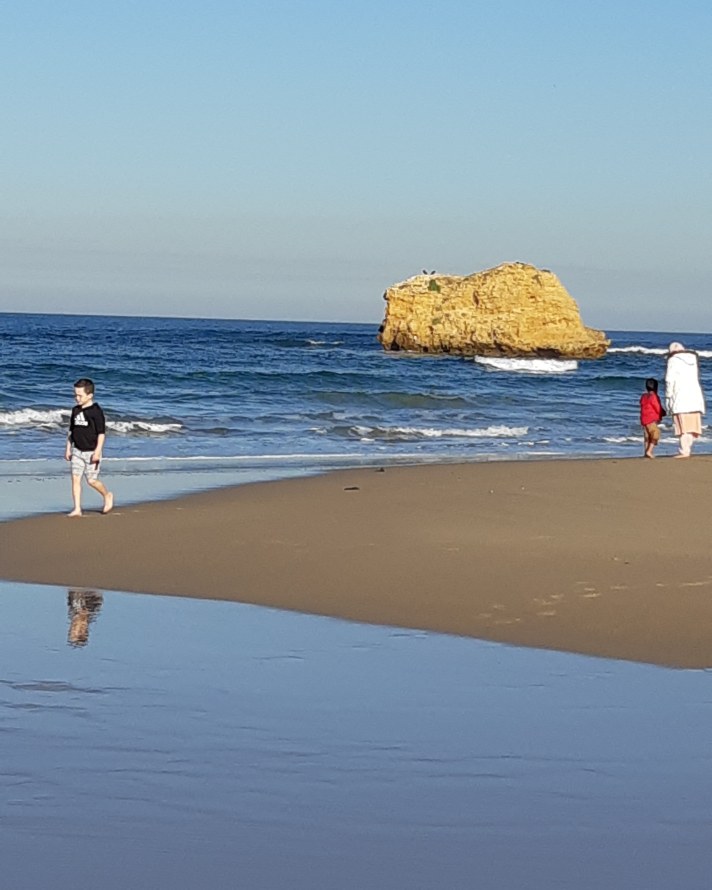 Ett ensamt barn och en mamma med ett barn, Torquay Beach.