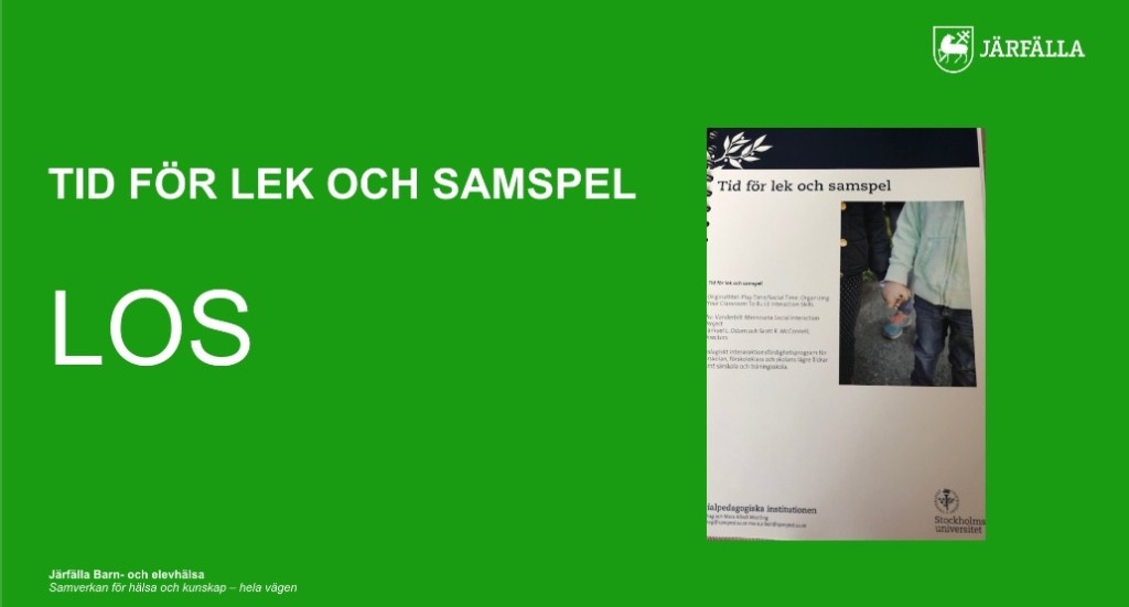 Tack vare forskningen i Playtime/ Socialtime har vi i Järfälla fått möjlighet att genomföra vårt lokala projekt ”LOS – tid för lek och samspel”